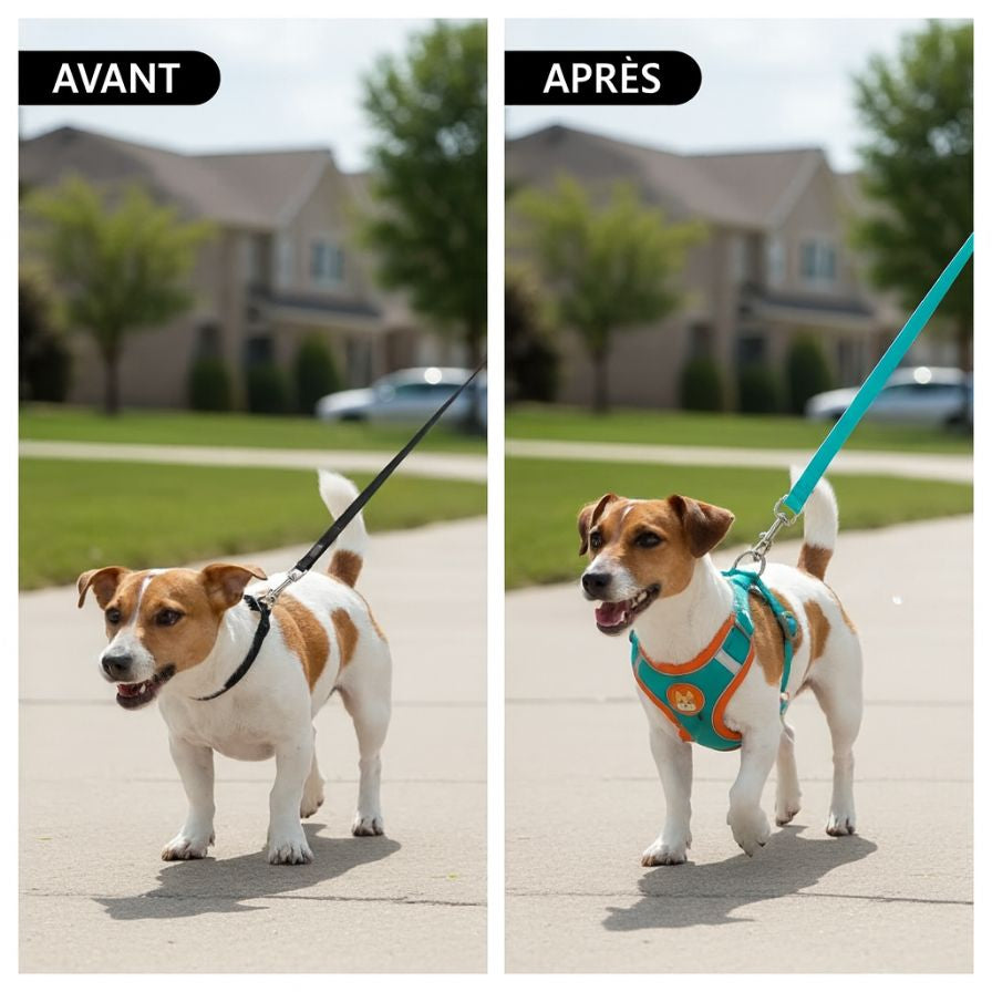 Bandes réfléchissantes ultra-visibles, rembourrage confortable et système anti-traction. Votre chien adore, vous contrôlez parfaitement.