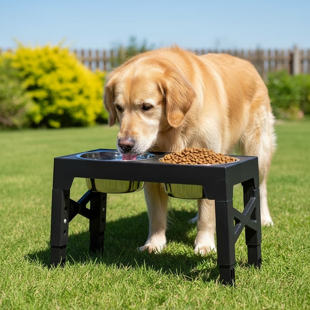 Support ajustable premium avec bols inox qui grandit avec votre chien. Posture saine, digestion optimale, bonheur garanti à chaque repas.